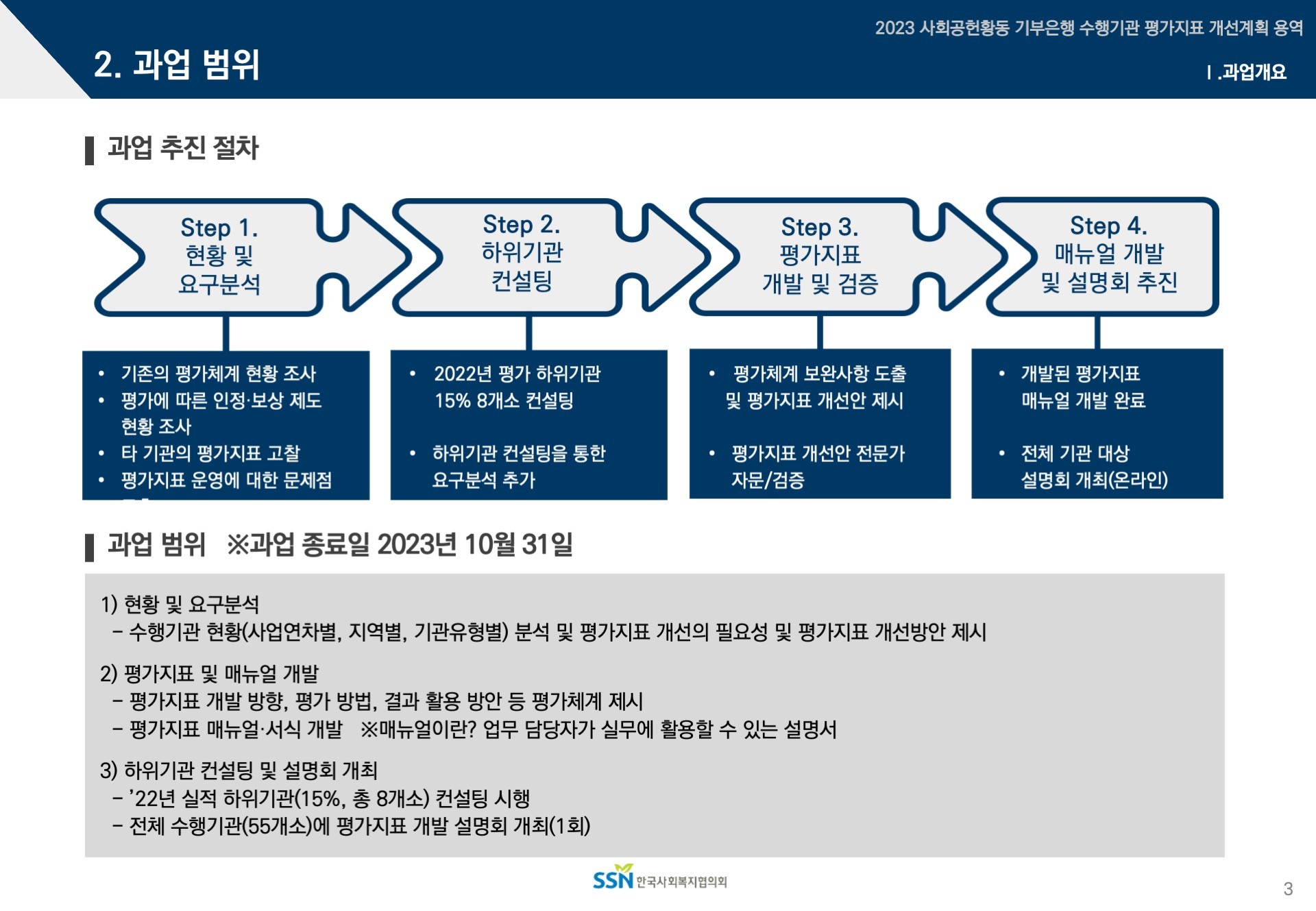 2023 한국사회복지협의회 사회공헌활동 기부은행 수행기관 평가지표 개선계획 용역 수행